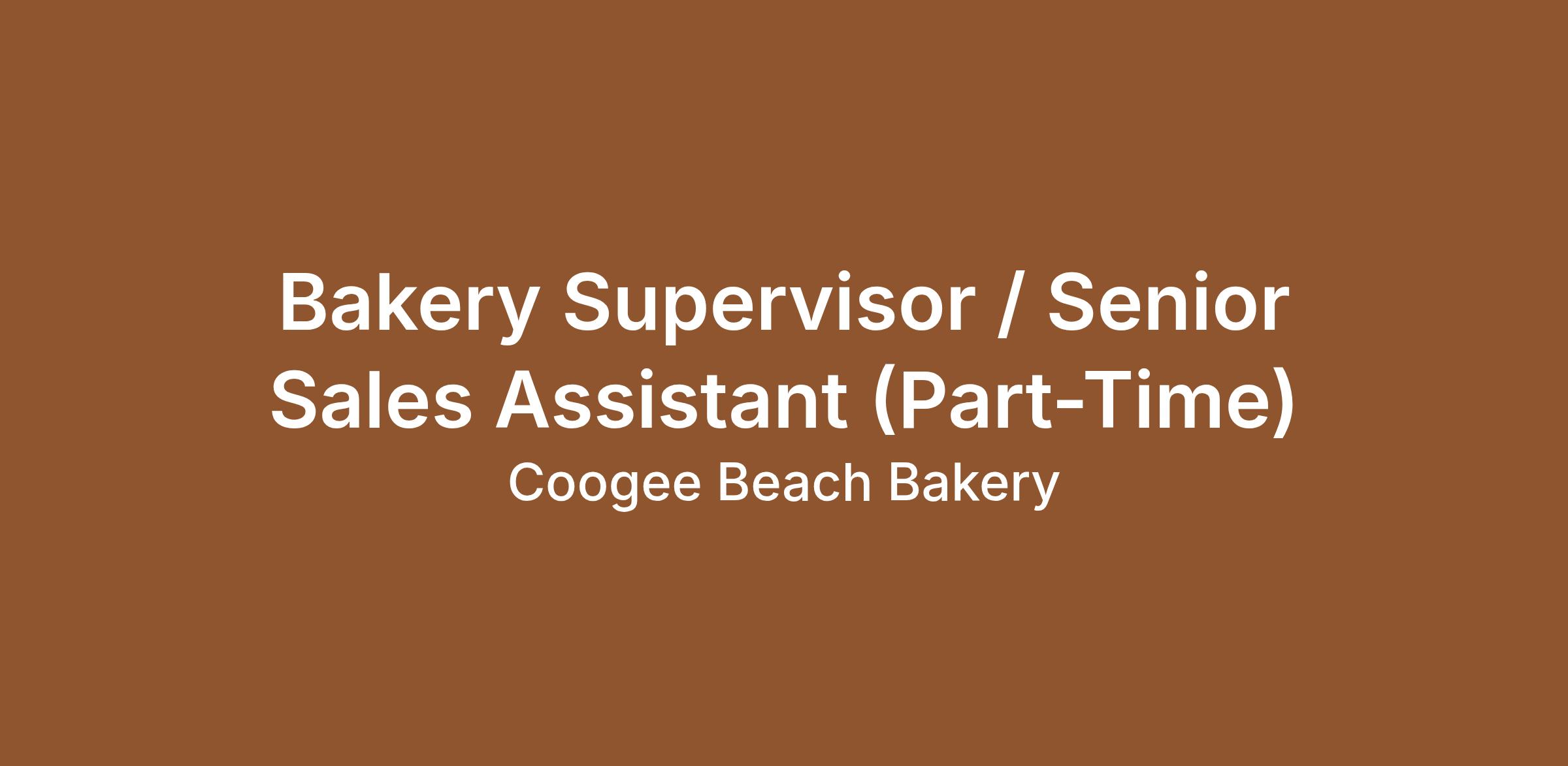 Bakery Supervisor / Senior Sales Assistant (Part-Time)