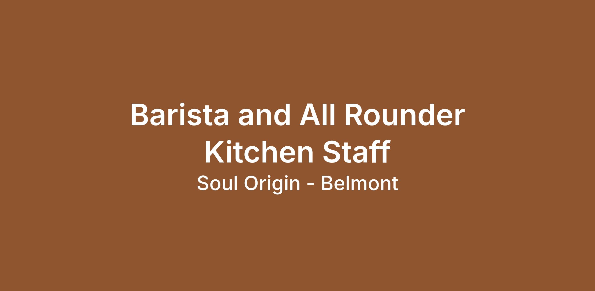 Soul Origin Belmont forum seeking for Barista and all rounder kitchen staff to take a new role and opportunity to play with different brews and fresh ingredients.