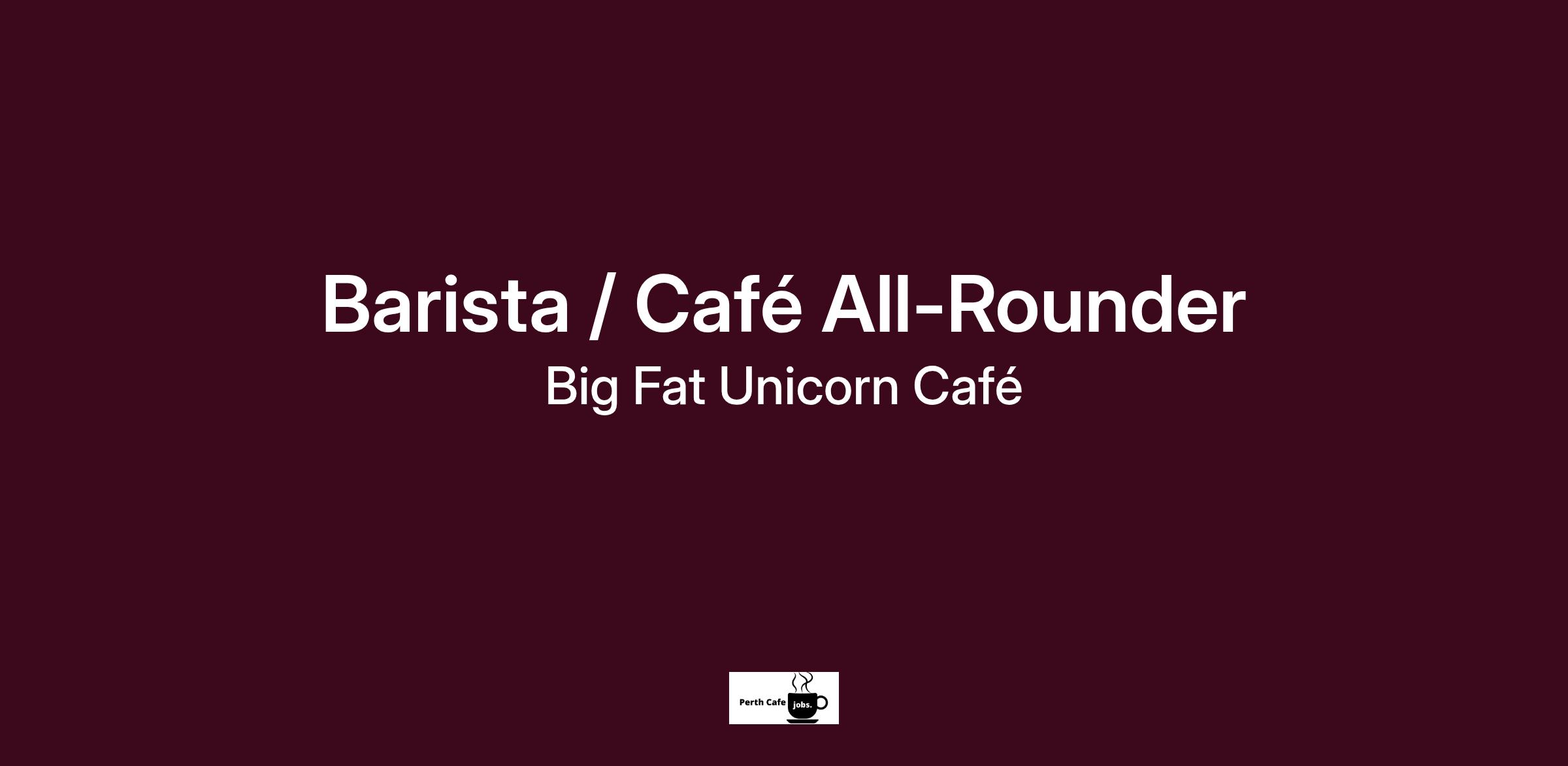 Here at Big Fat Unicorn café (Hay St, West Perth), we’re on the lookout for a casual barista / café all-rounder to join our team!