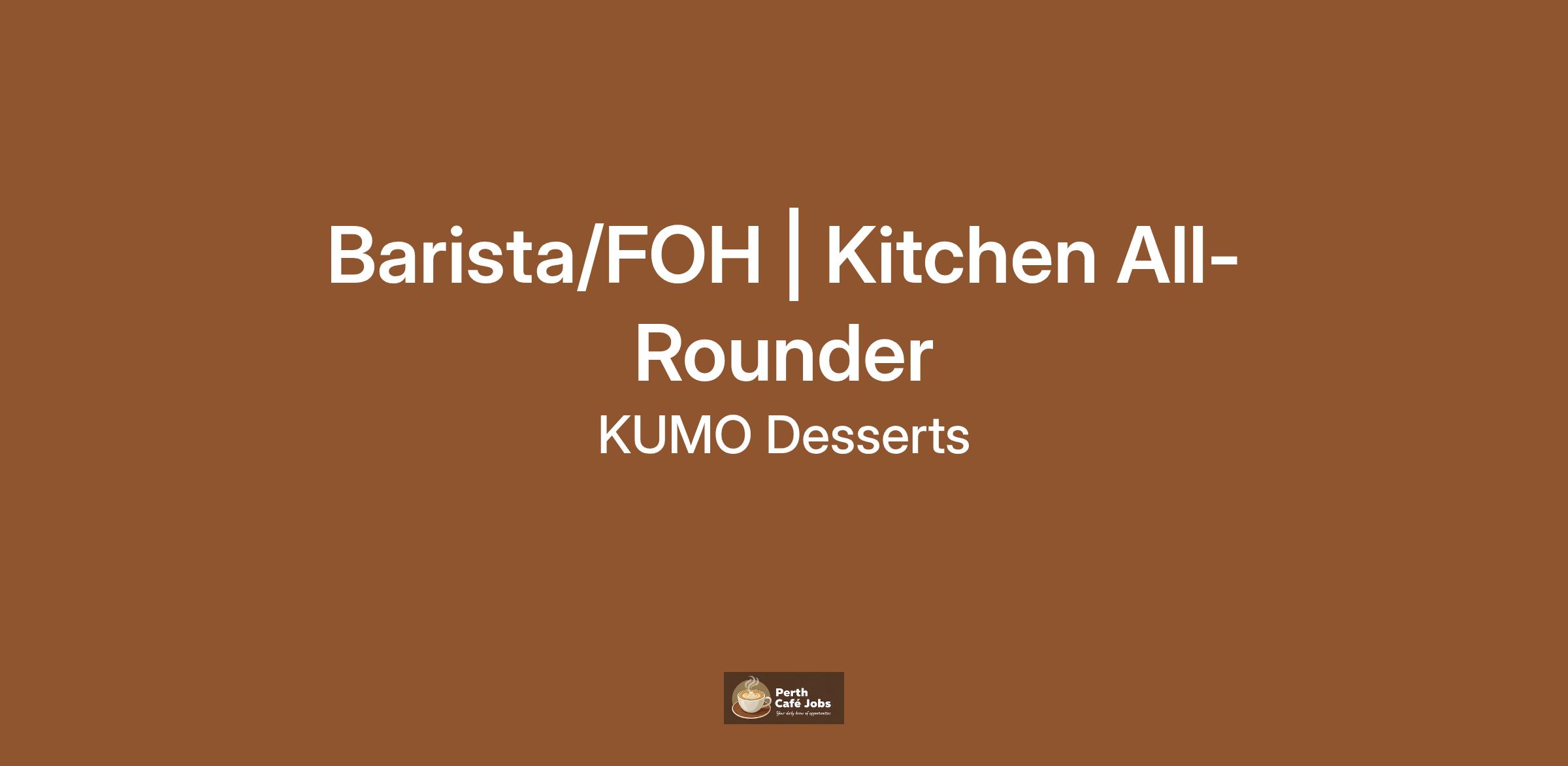 KUMO Desserts Northbridge specialising in soufflé pancakes is on the lookout for a Barista/Front of House. Must be experienced (1+ year), able to do latte art and can communicate well with customers.