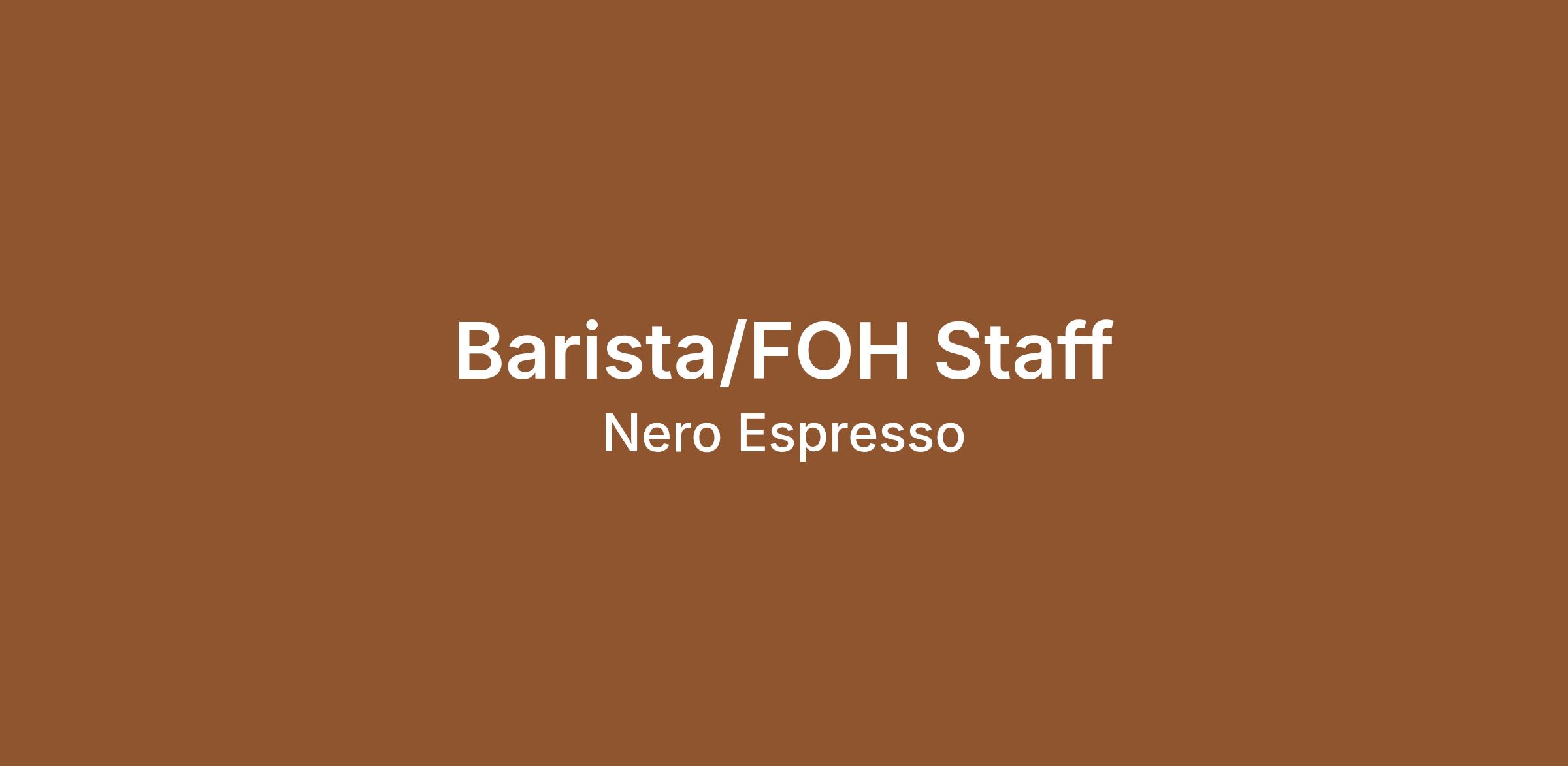 Nero espresso coffee is looking for a barista/FOH staff member for a mon-fri position.