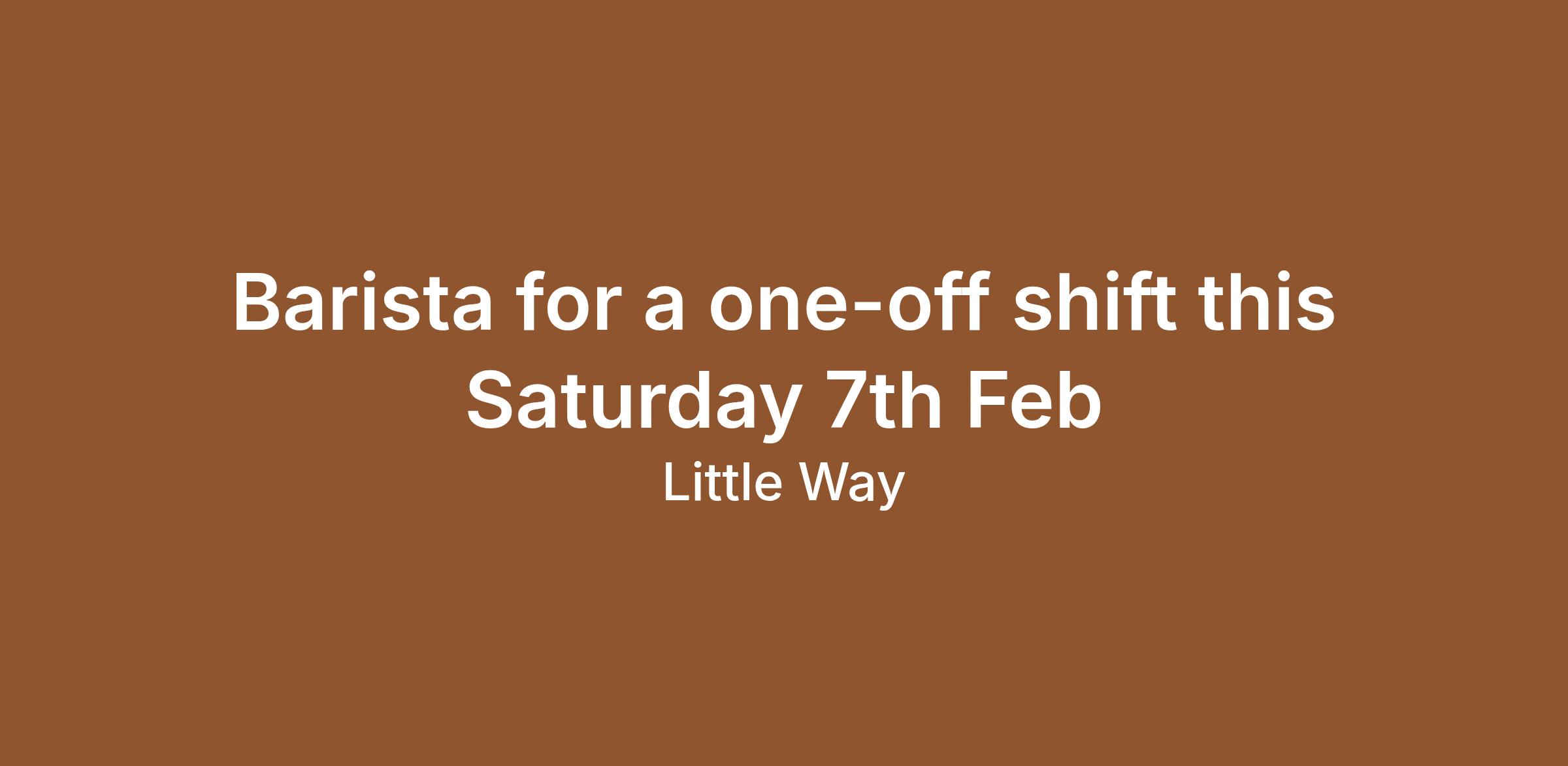 Little Way in Nedlands is looking for an experienced Barista for a one-off shift this Saturday 7th Feb 2026 from 7am - 2pm (with a 30 minute break). We are looking for someone with at least 1 year experience in a fast paced environment and ability to do good latte art. Pay will be $38.78 per hr + super. Parking is free.