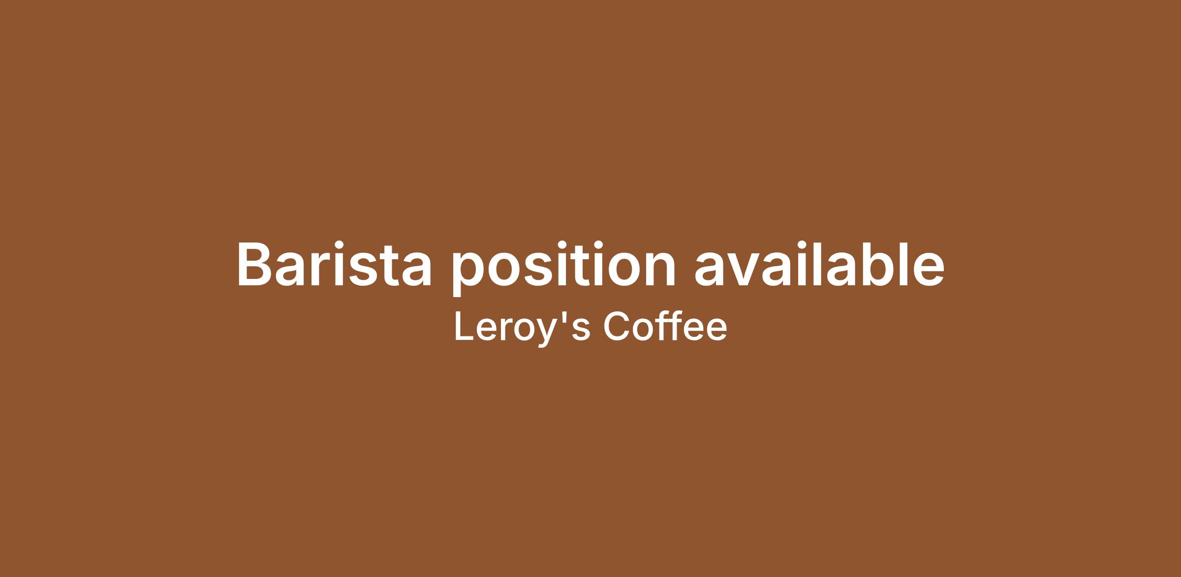 Leroy's Coffee are hiring! We are looking for a Barista / All Rounder to join our team in our Cottesloe and Osborne Park stores.