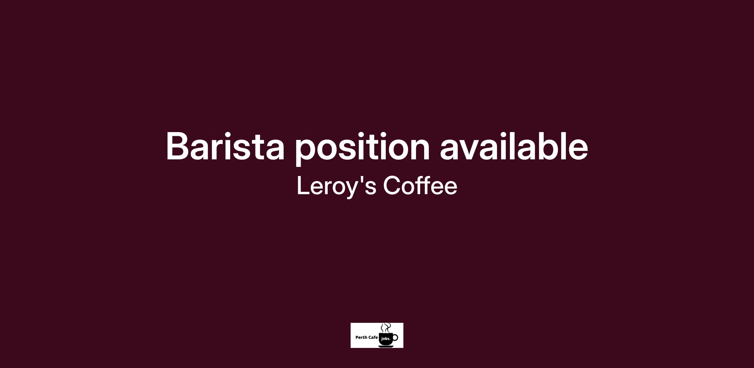 Leroy's Coffee are hiring! We are looking for a Barista / All Rounder to join our team in our Bayswater and Cottesloe stores.