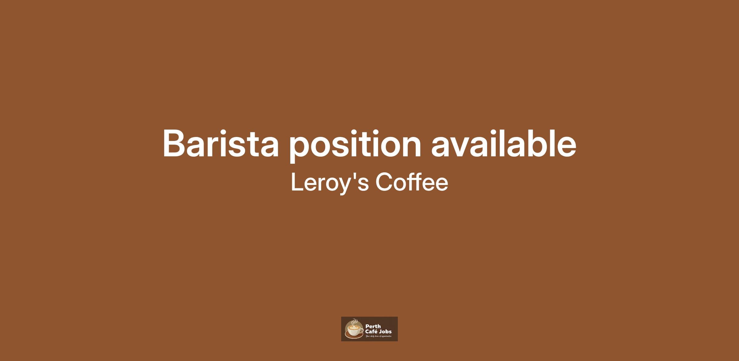 Leroy's Coffee are hiring! We are looking for a Barista / All Rounder to join our team at our newest location in Osborne Park.