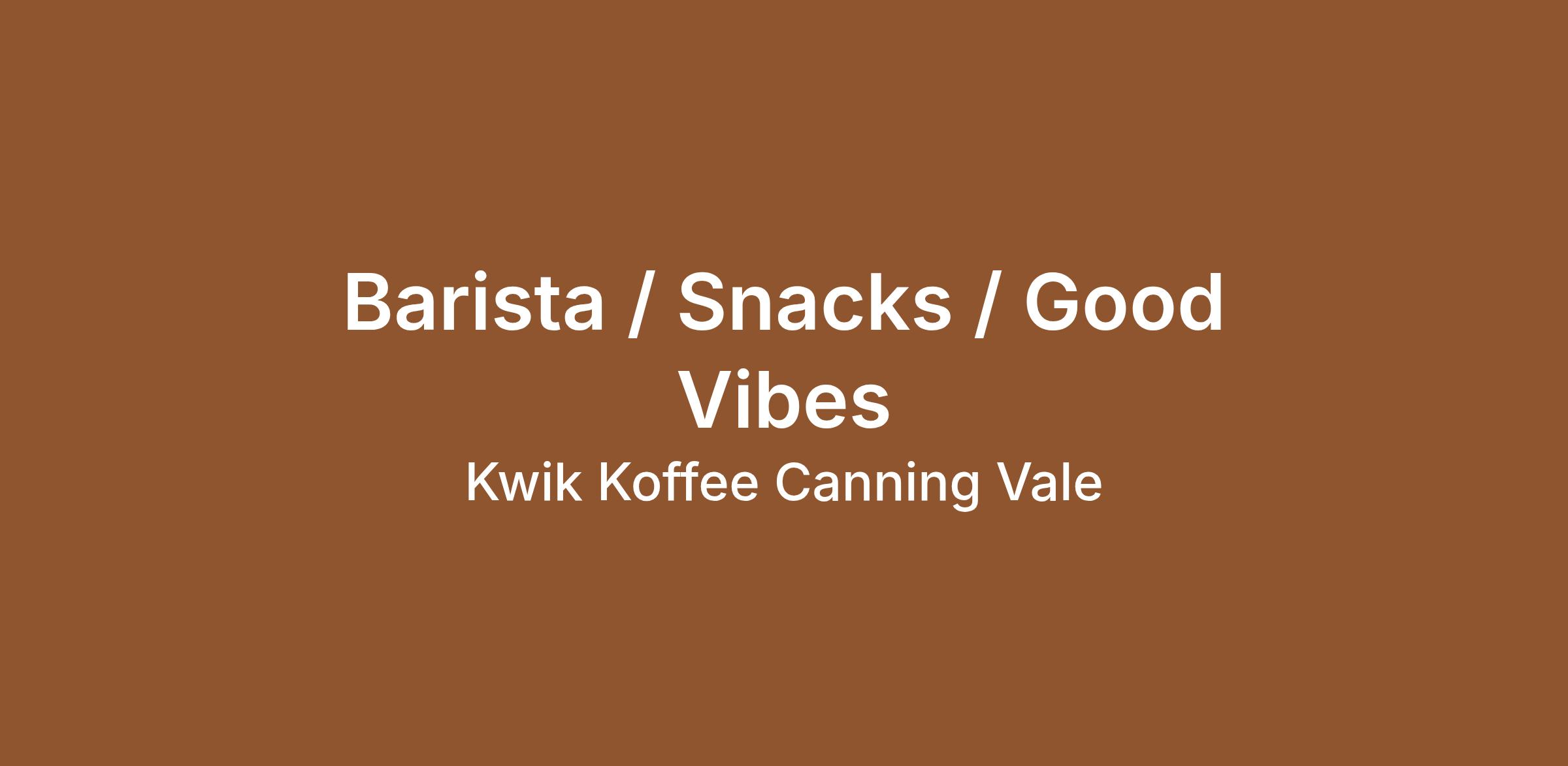 Kwik Koffee in Canning Vale are on the hunt for a few fabulous baristas to help us provide great coffee to the good folks. If you are looking at coffee/hospo as a career path we can show you how to do it the right way / or if you're chasing a position in a business that can offer flexible hours, good work and awesome culture we would really love to hear from you.