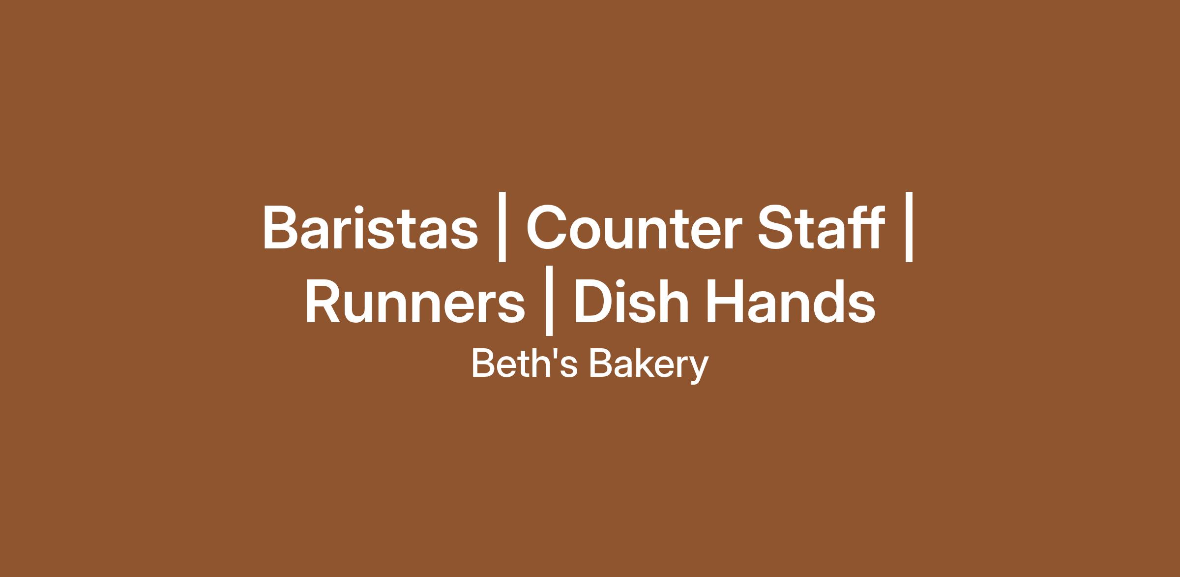 · Counter Staff: You are the face of Beth’s! You’ll handle orders, share your knowledge of our sourdough and pastries, and provide stellar service.