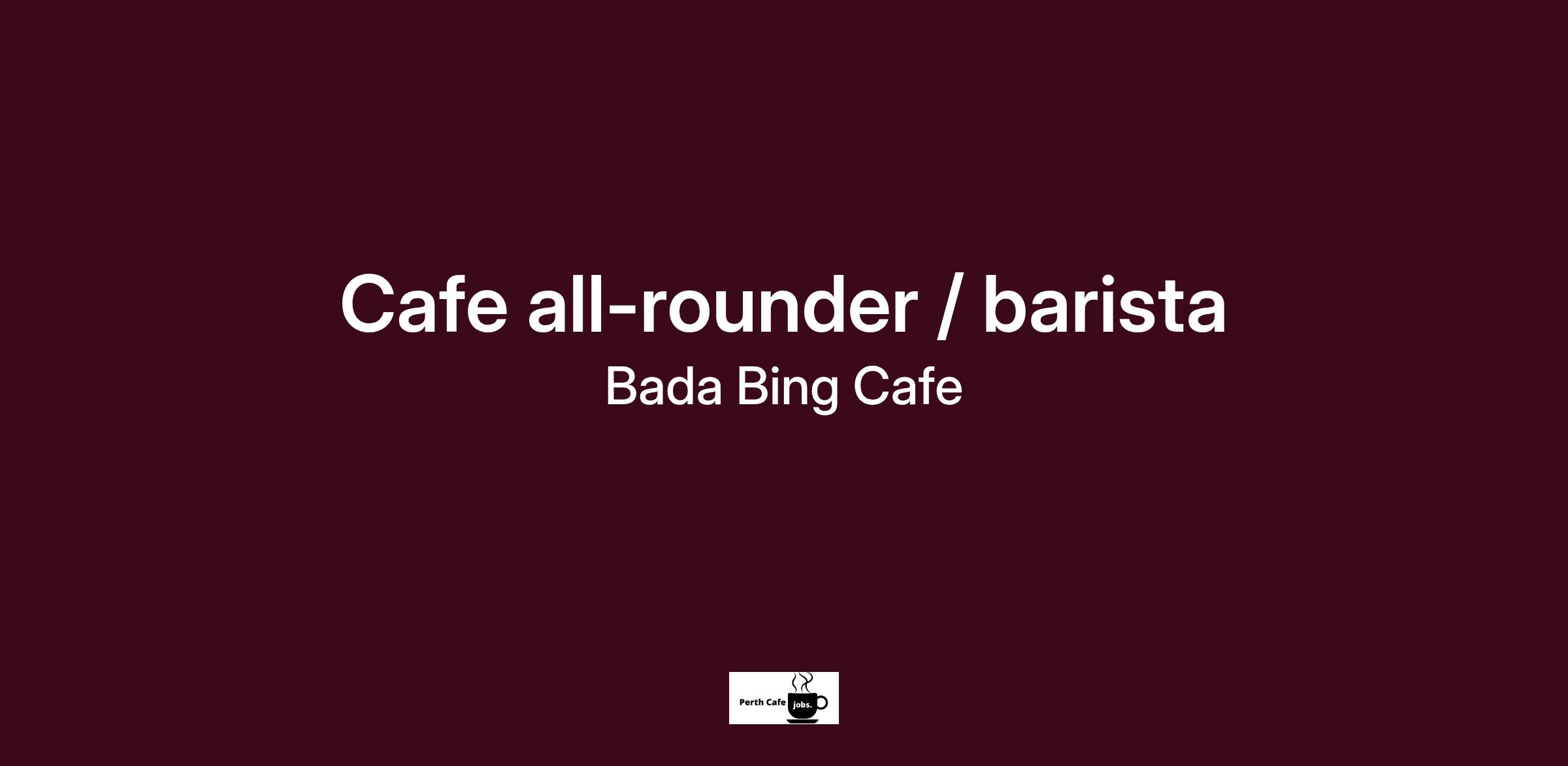 Bada Bing Café in Woodlands is looking for an experienced all-rounder / barista to join our friendly team!