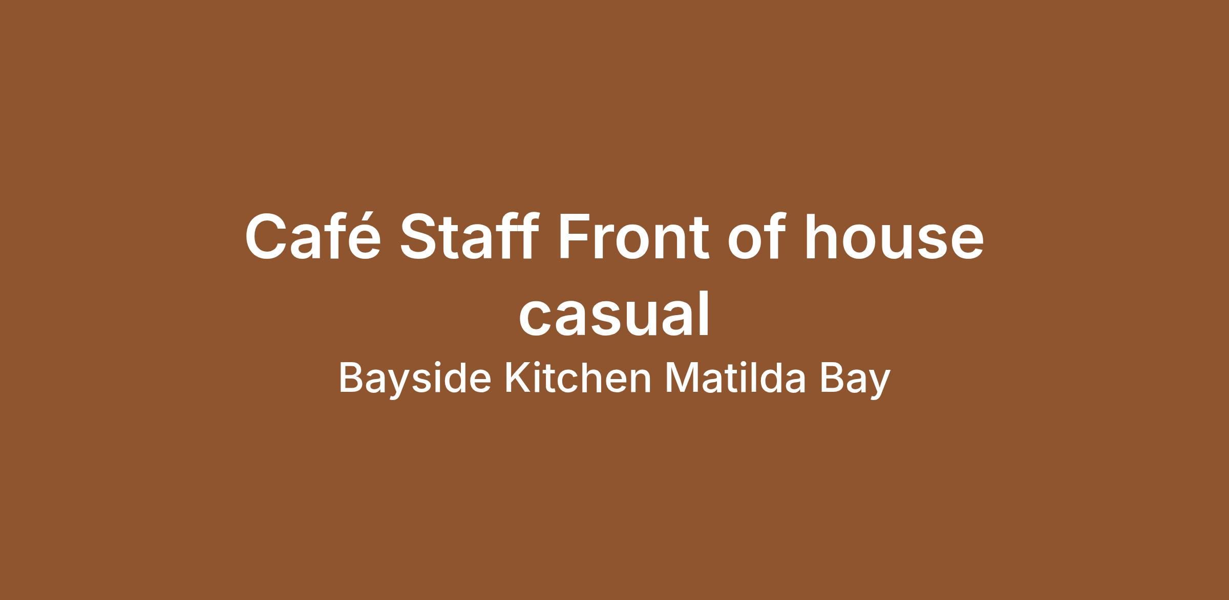 Bayside Kitchen Matilda Bay is seeking dynamic individuals to join our busy and vibrant cafe team. To be considered for this casual position, you will be expected to have previous experience in a high volume cafe, great personal appearance and exceptional attention to detail.
