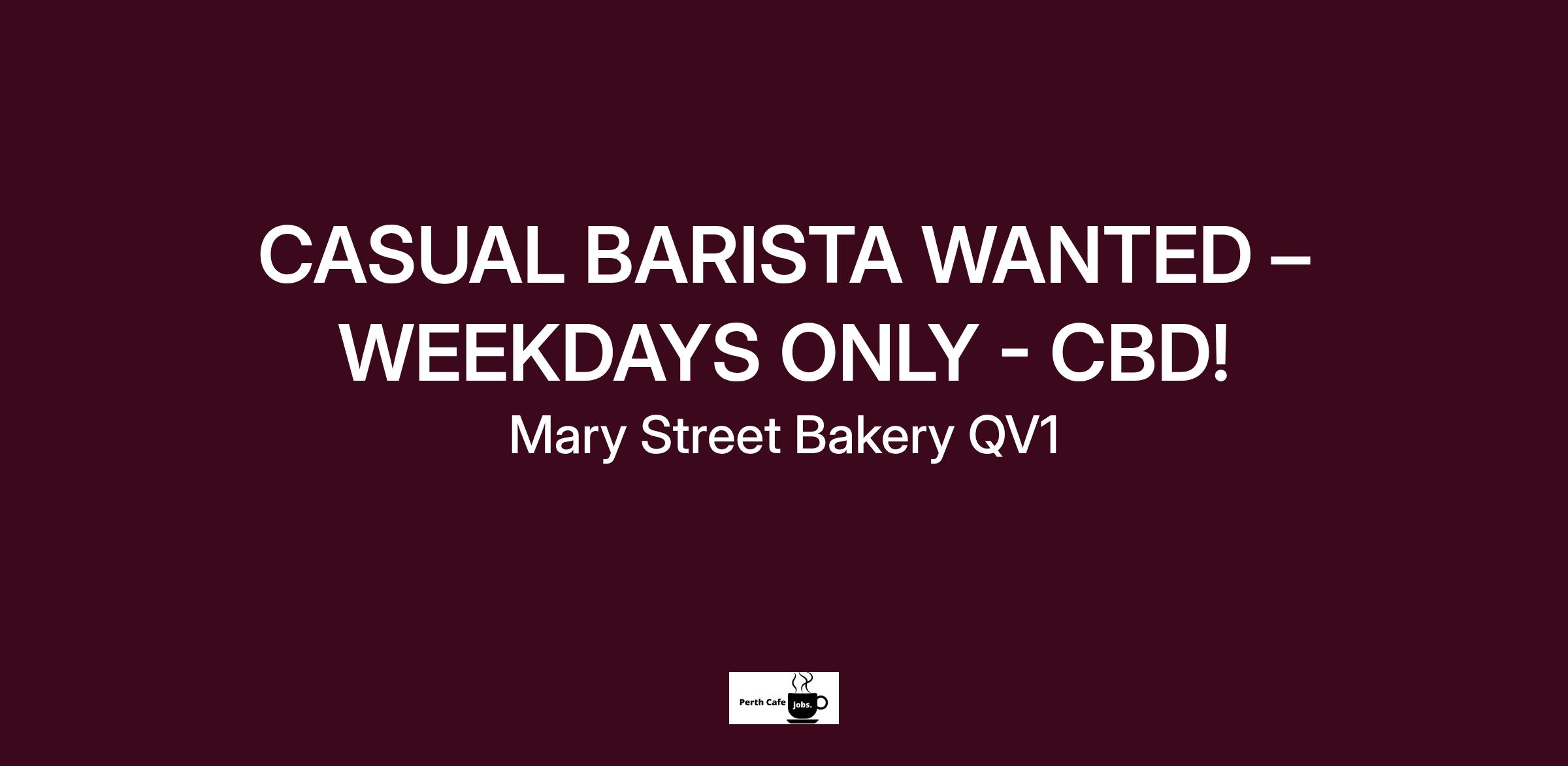 CASUAL BARISTA WANTED – WEEKDAYS ONLY - CBD!