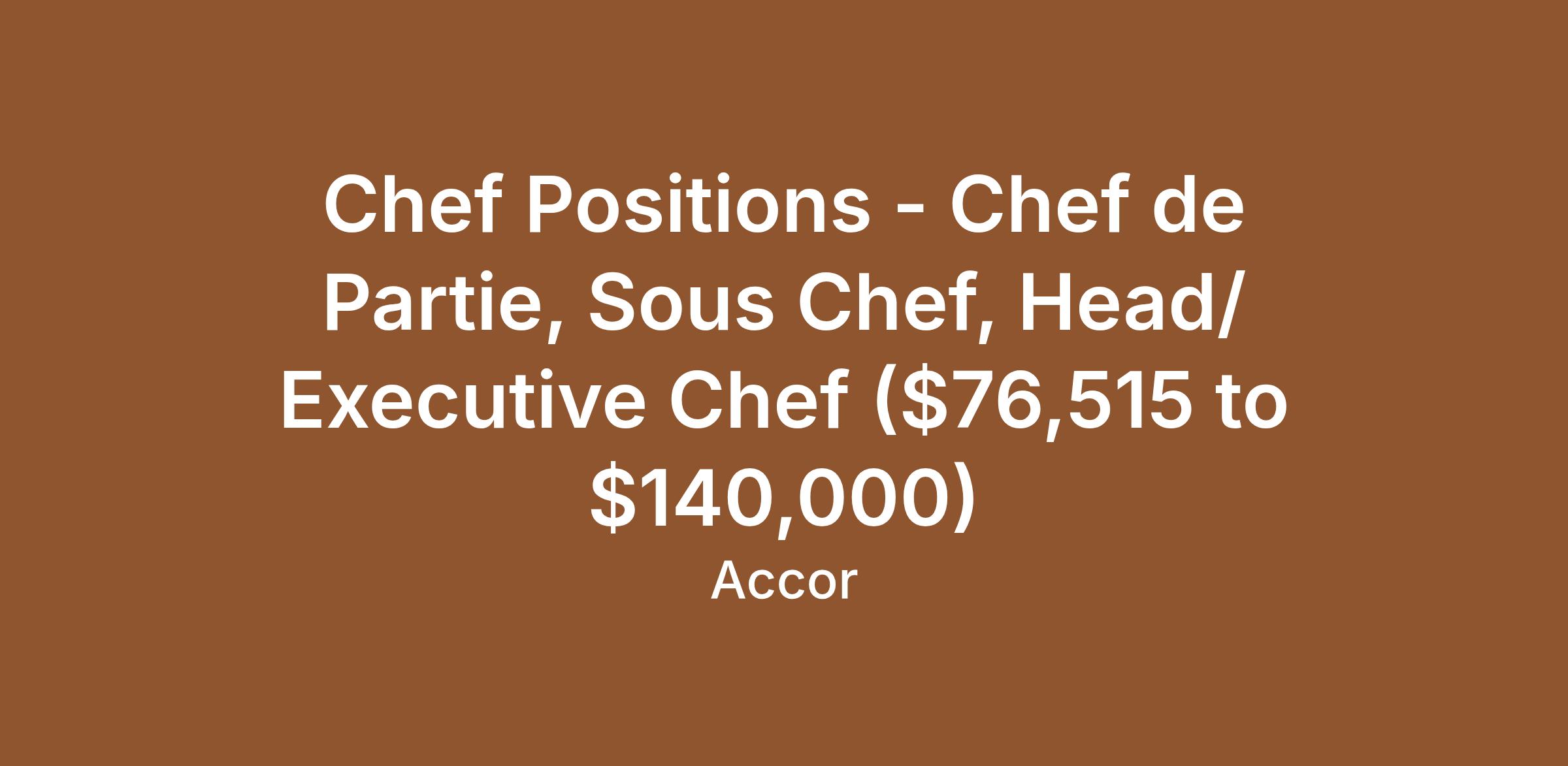Role: Chef de Partie, Sous Chef, Head/ Executive Chef