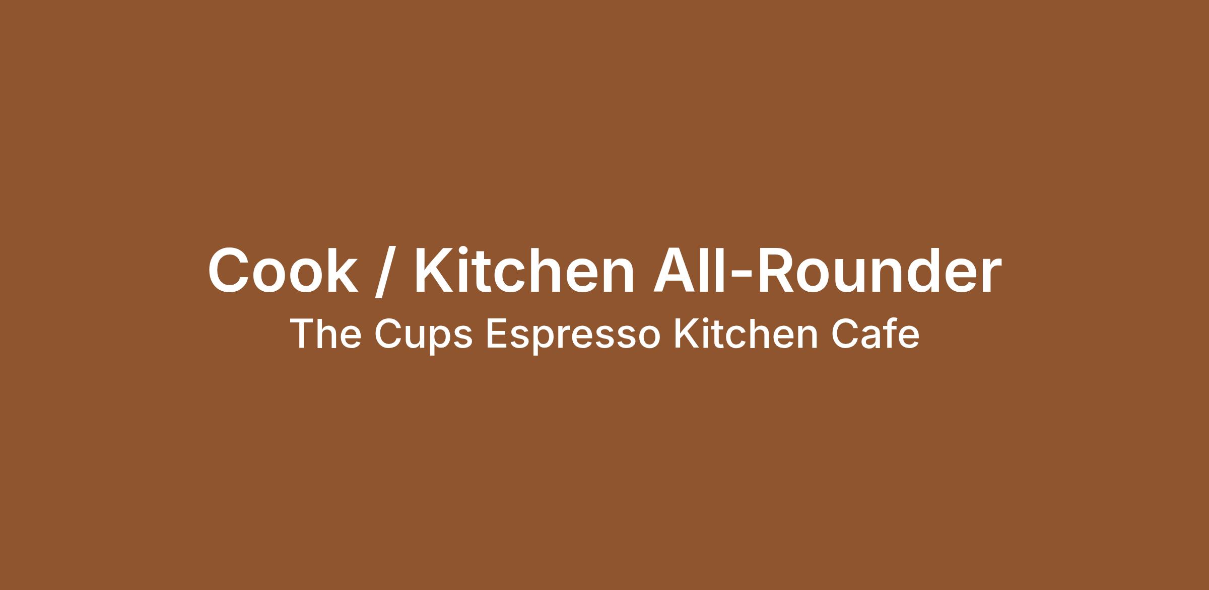 Cook / Kitchen All-Rounder Wanted – The Cups Espresso Kitchen Cafe in Midland.