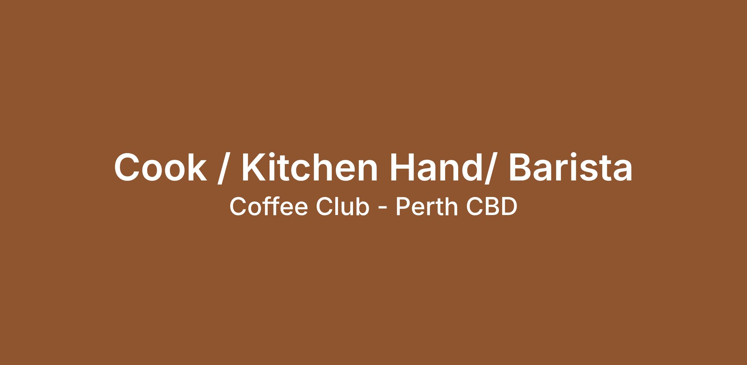 Cook / Kitchen Hand/ Barista
