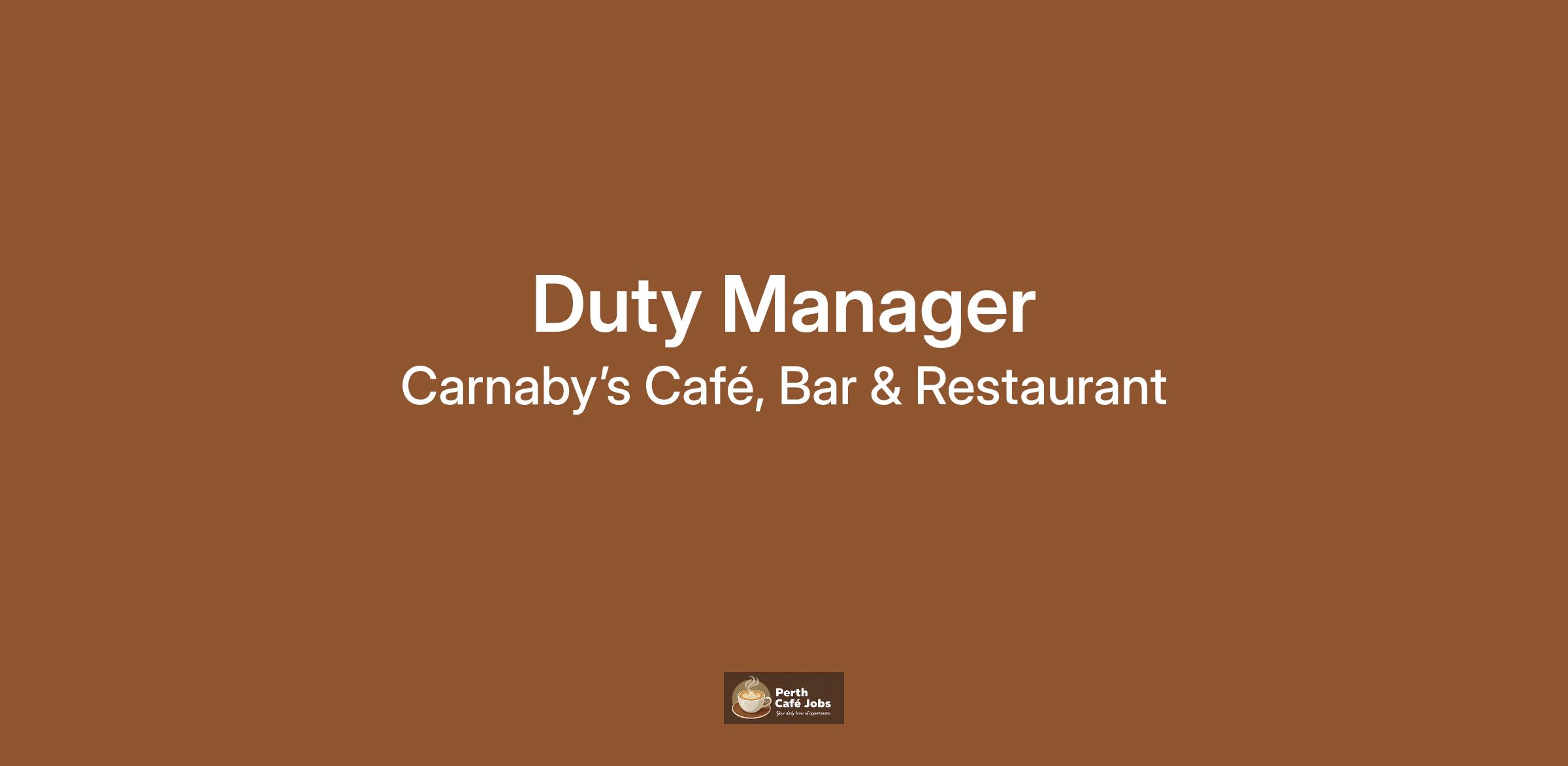 Carnaby’s Café, Bar & Restaurant is seeking an enthusiastic Duty Manager (15+ hrs/week) to join our team at East Fremantle Community Park. Award: HIGA Level 5.