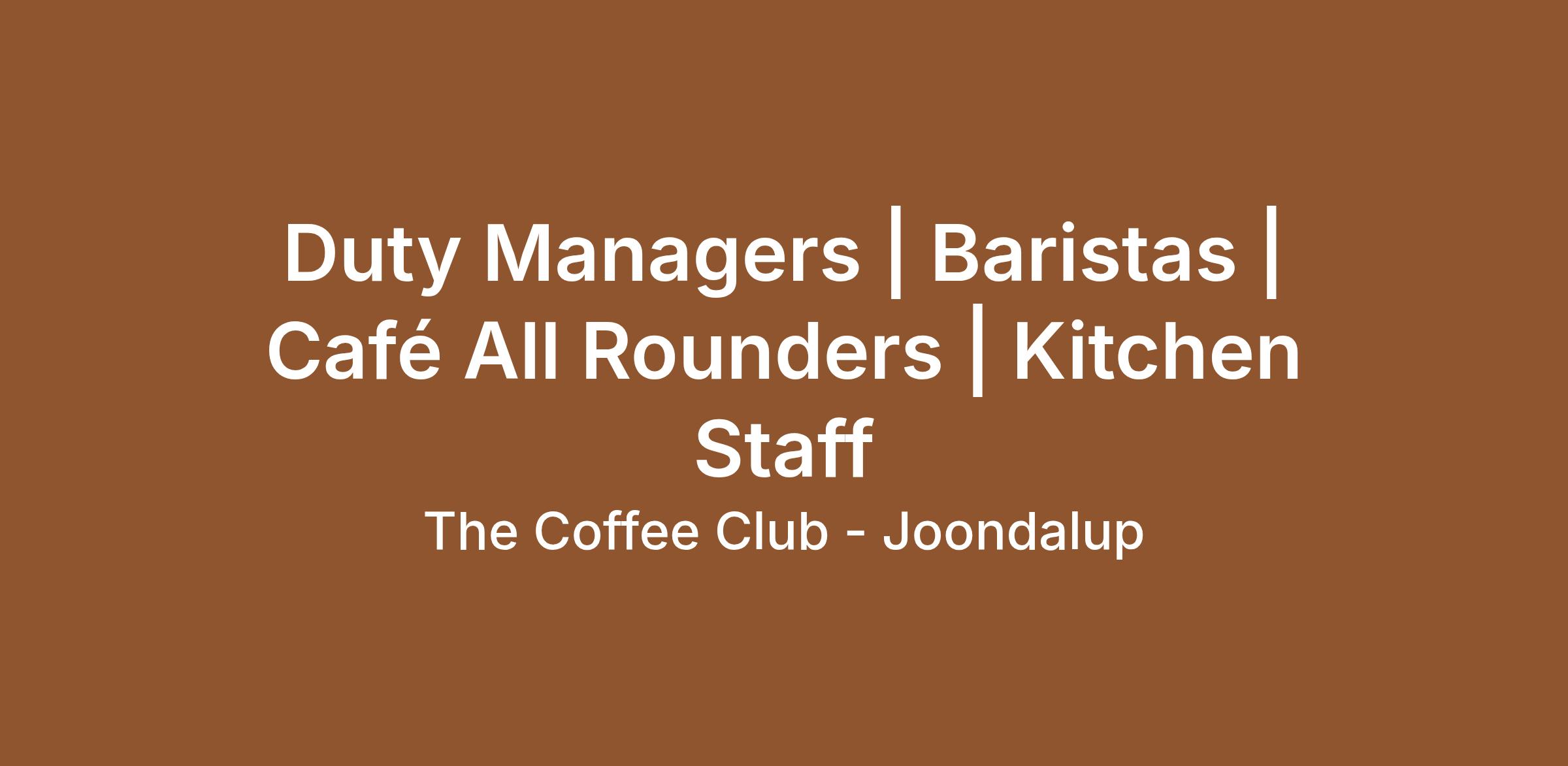 Apply now by sending your resume via email to lakesidejoondalup@coffeeclub.com.au