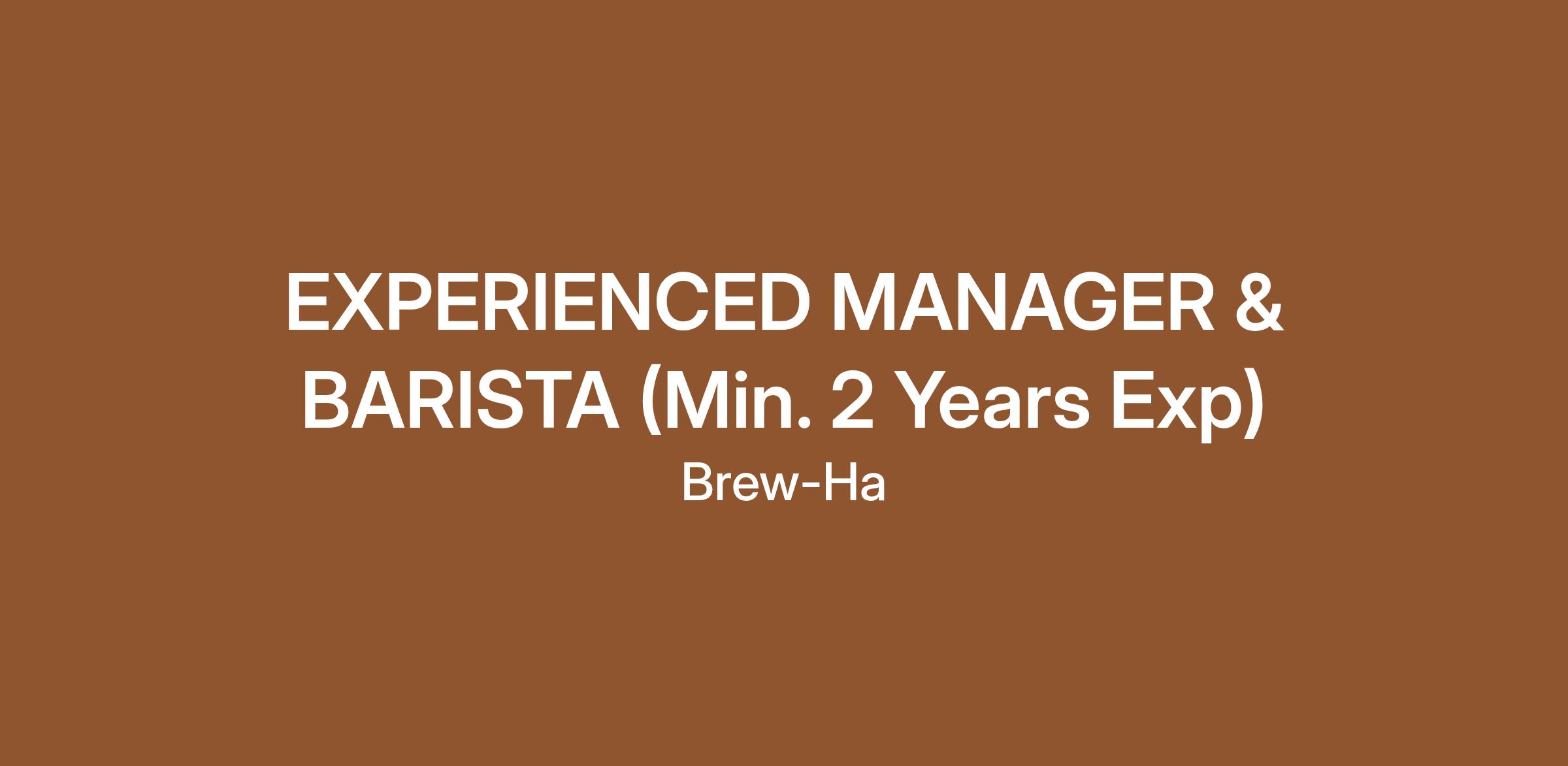 HIRING : EXPERIENCED MANAGER & BARISTA (Min. 2 Years Exp)