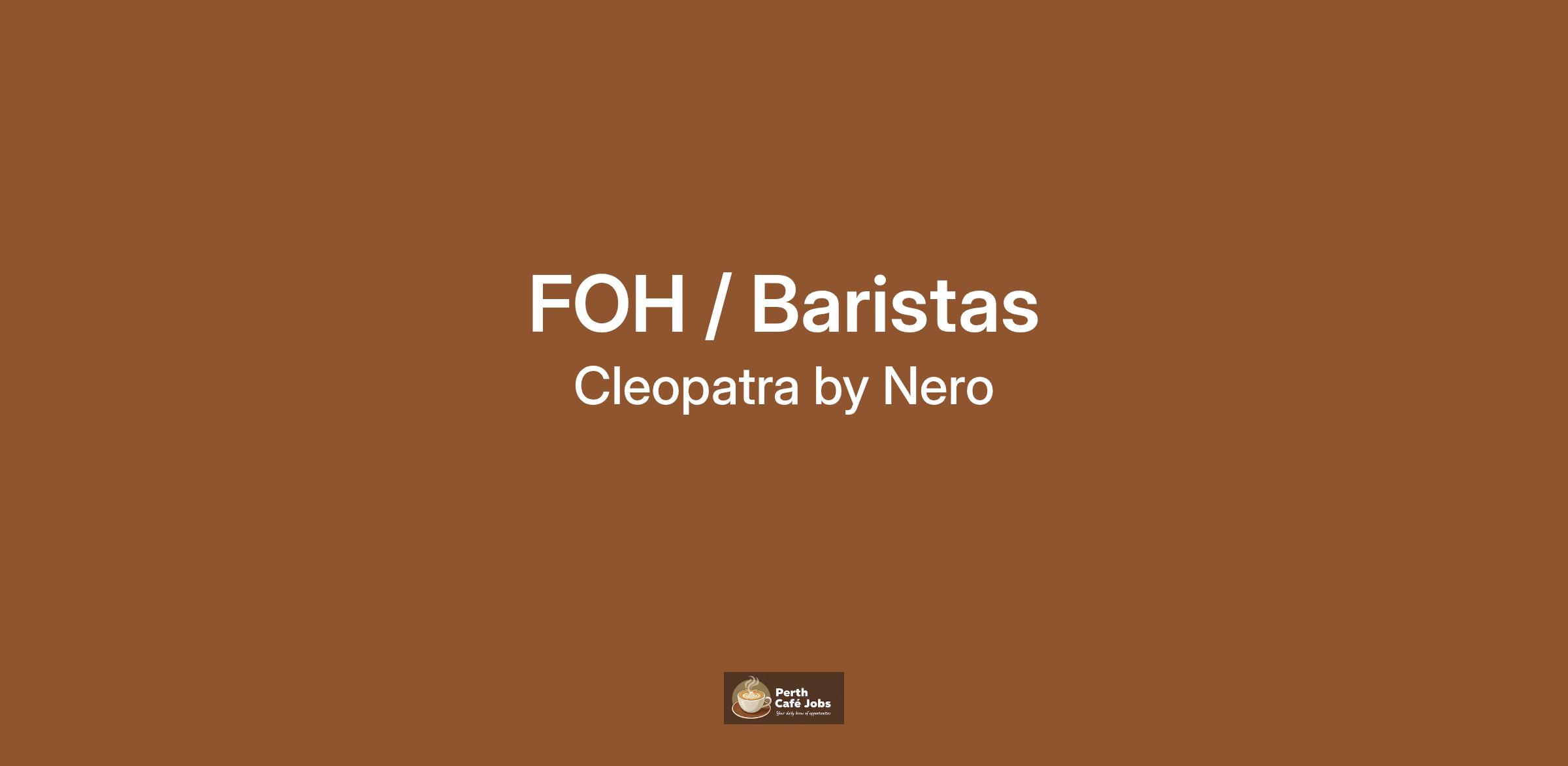 Email resumes to hello@cleopatrabynero.com.au or drop in for a chat.