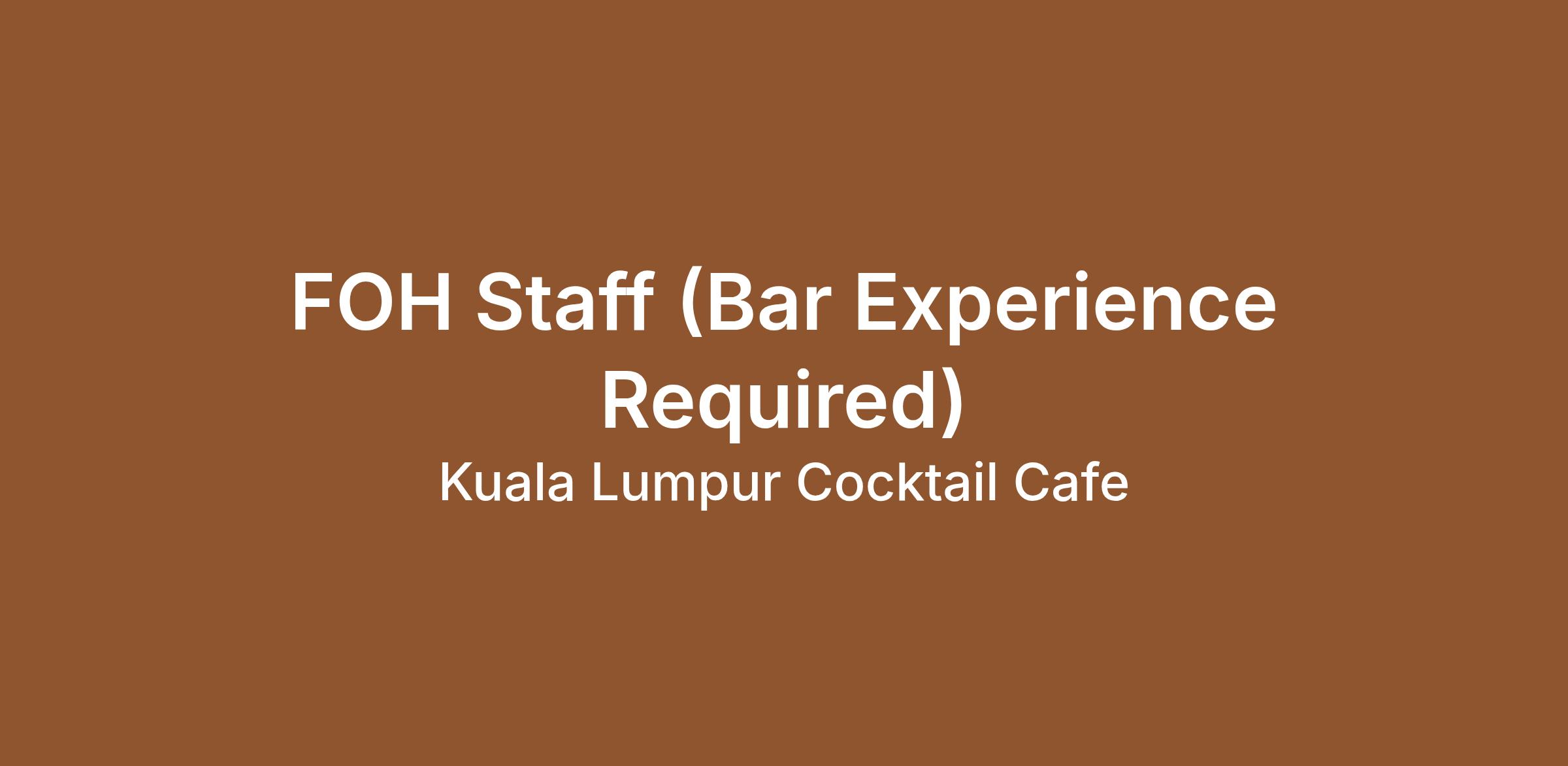 We’re Hiring – FOH Staff (Bar Experience Required)