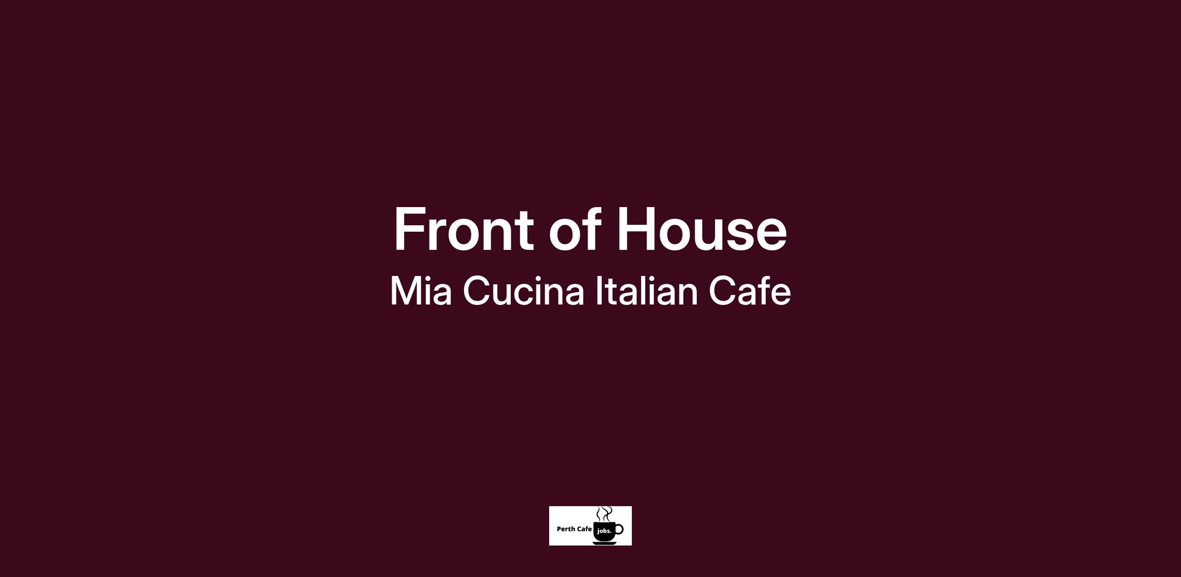 If you are experienced in hospitality and are looking for extra hours please send your resume to contact@miacucinawa.com.au attention: Anna