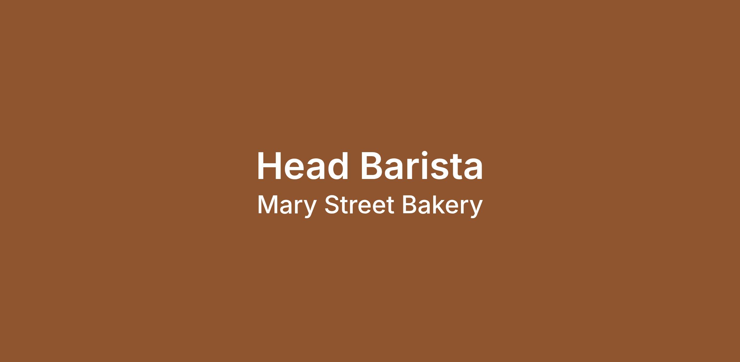 Mary Street Bakery QV1 is looking for an experienced head barista to lead our coffee section and join our super friendly, close-knit team