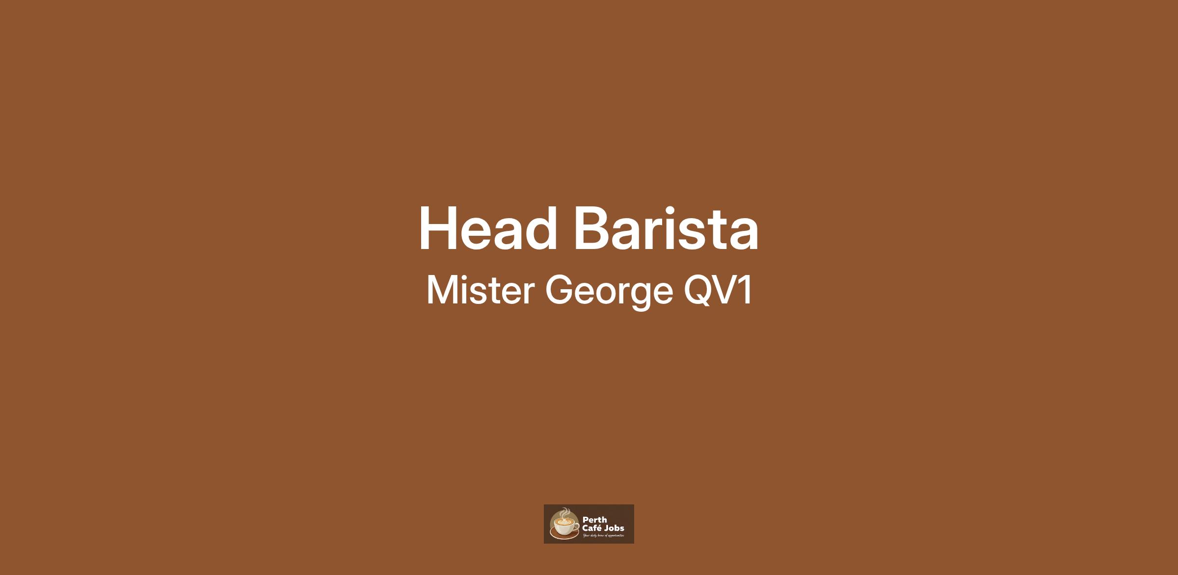 Mister George QV1 in the cbd is on the lookout for a head barista to take charge of our day to day operations.