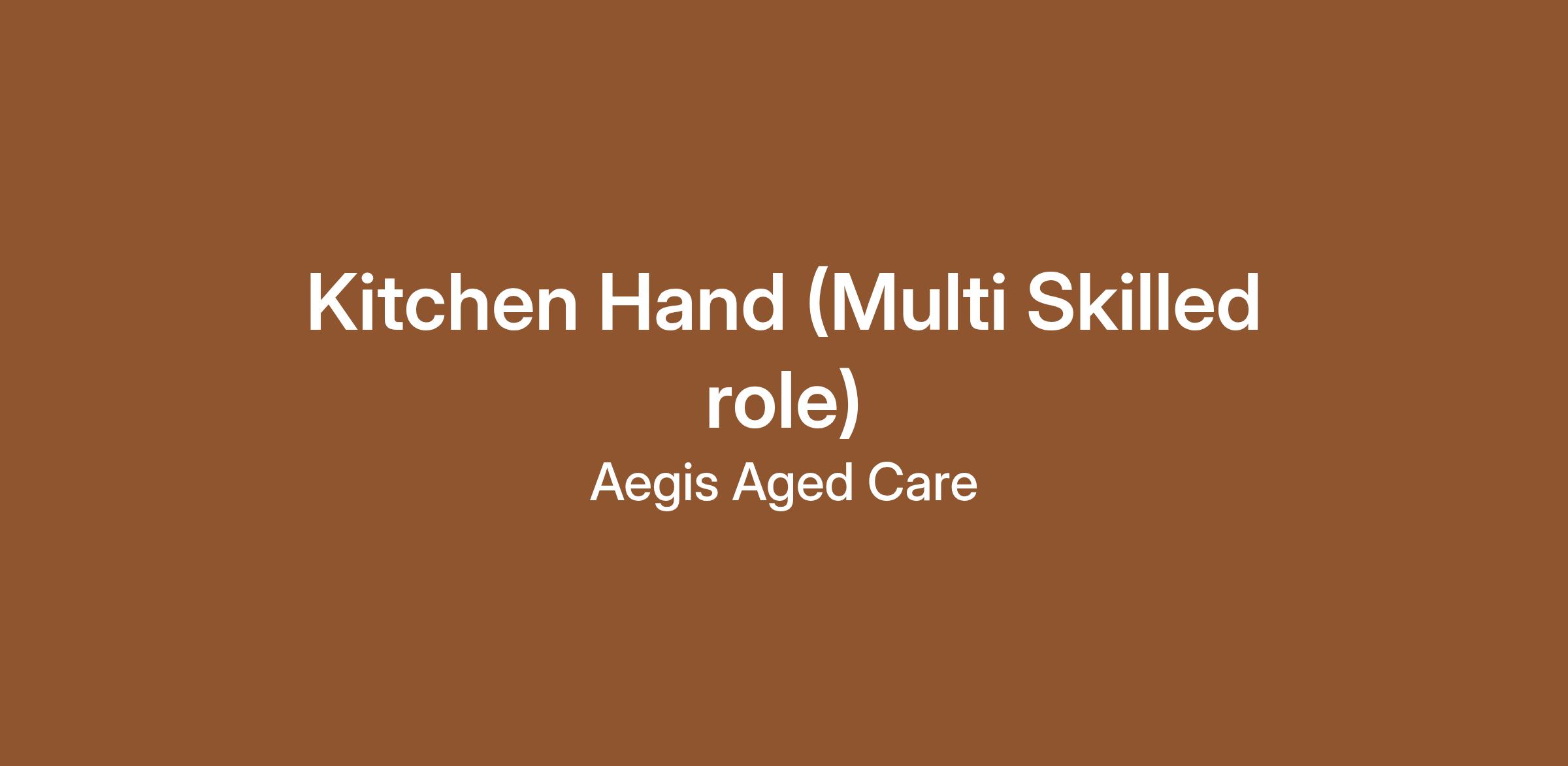 Aegis Aged Care have several vacancies for experienced Kitchen Hands, within our beautiful Shorehaven Facility.