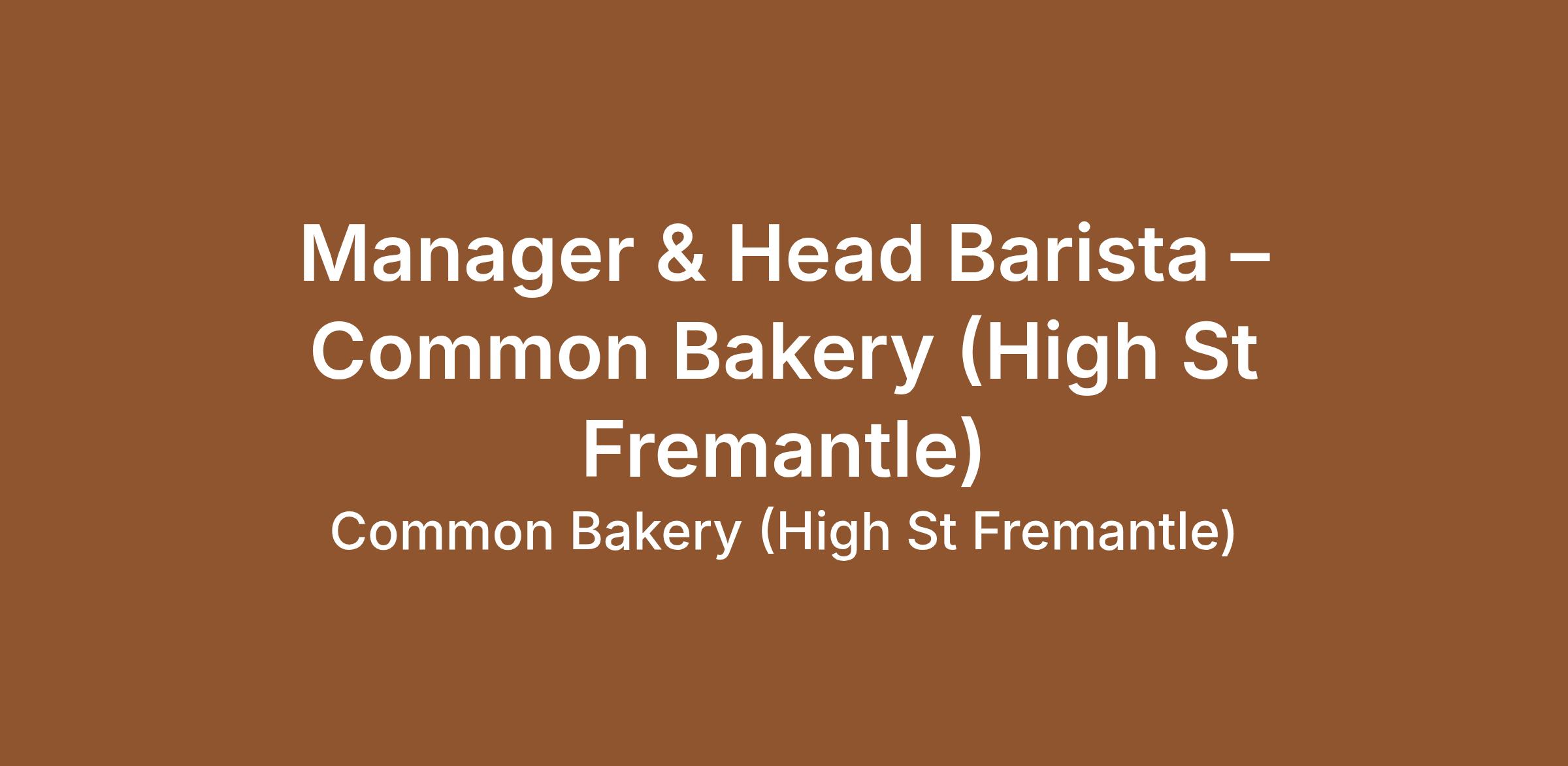 Common Bakery High Street Fremantle is seeking an experienced Store Manager and a passionate Head Barista to join our team. These are hands on leadership roles suited to individuals who thrive in a fast paced hospitality environment, value strong team culture, and take pride in consistency, quality, and service.