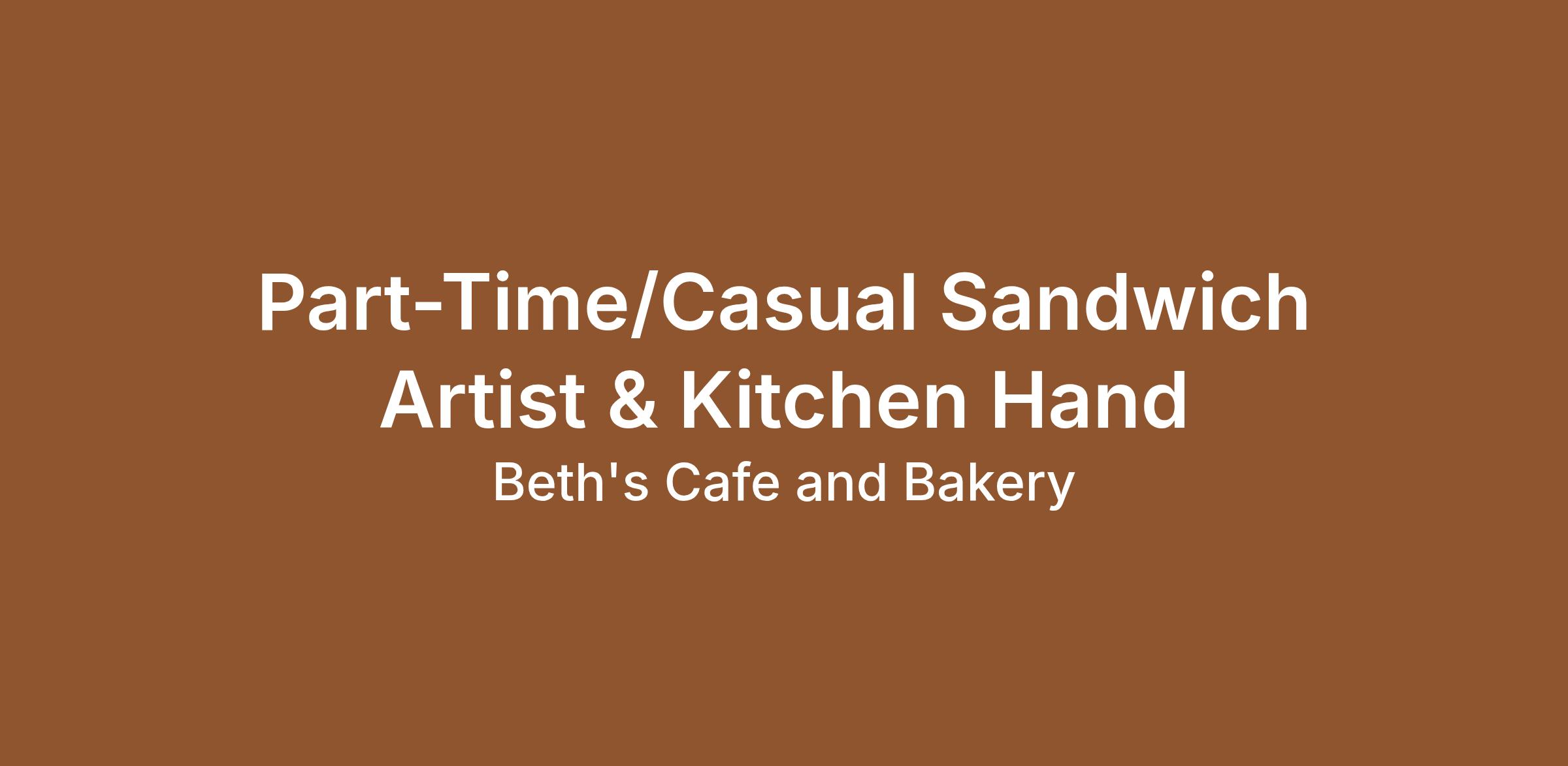 We’re looking for a Part-Time/Casual Sandwich Artist & Kitchen Hand to join our crew at Beth’s.