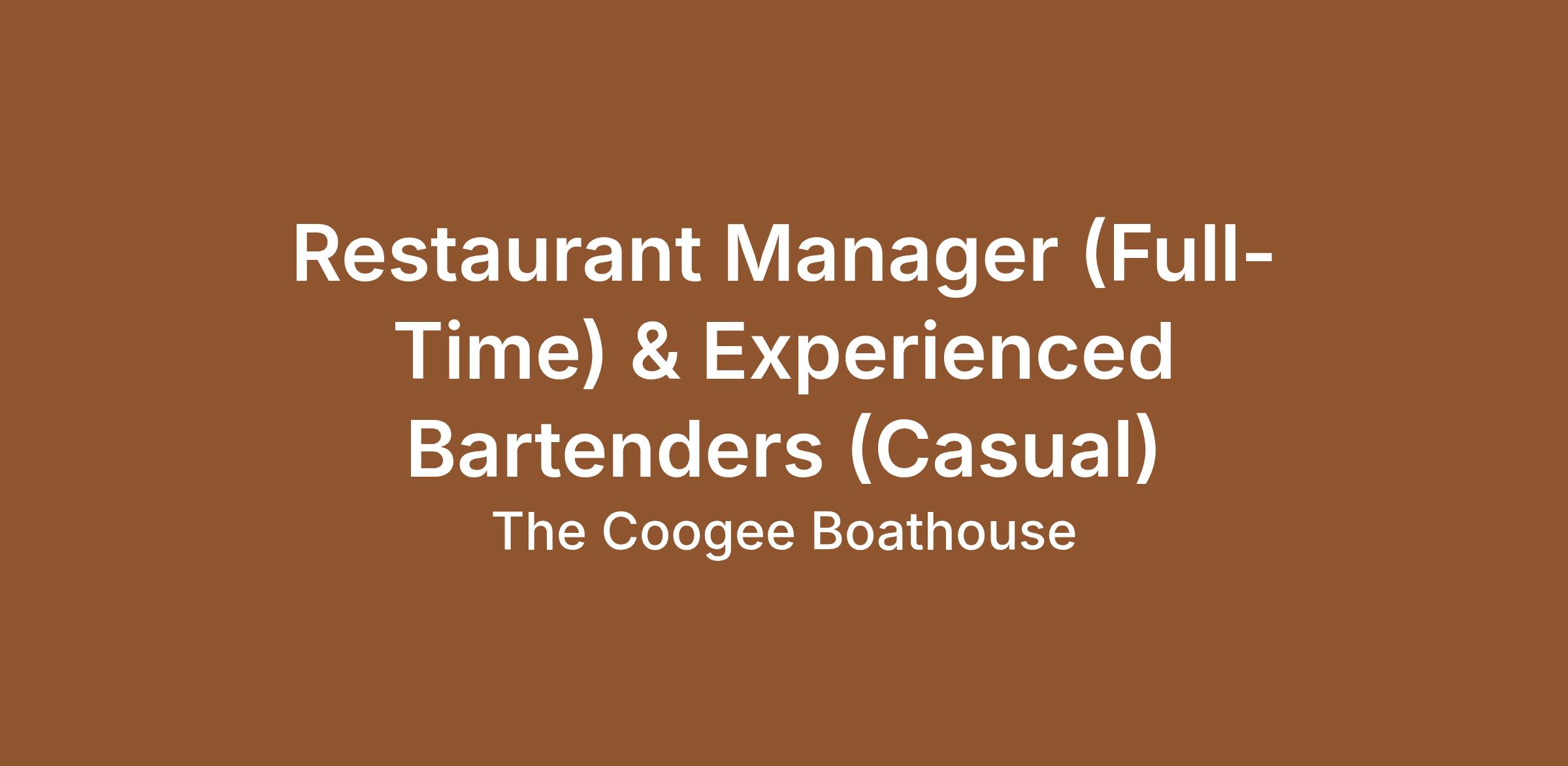 The Coogee Boathouse is looking for a strong full-time Restaurant Manager and experienced casual bartenders to join our high-energy, fast-paced team.