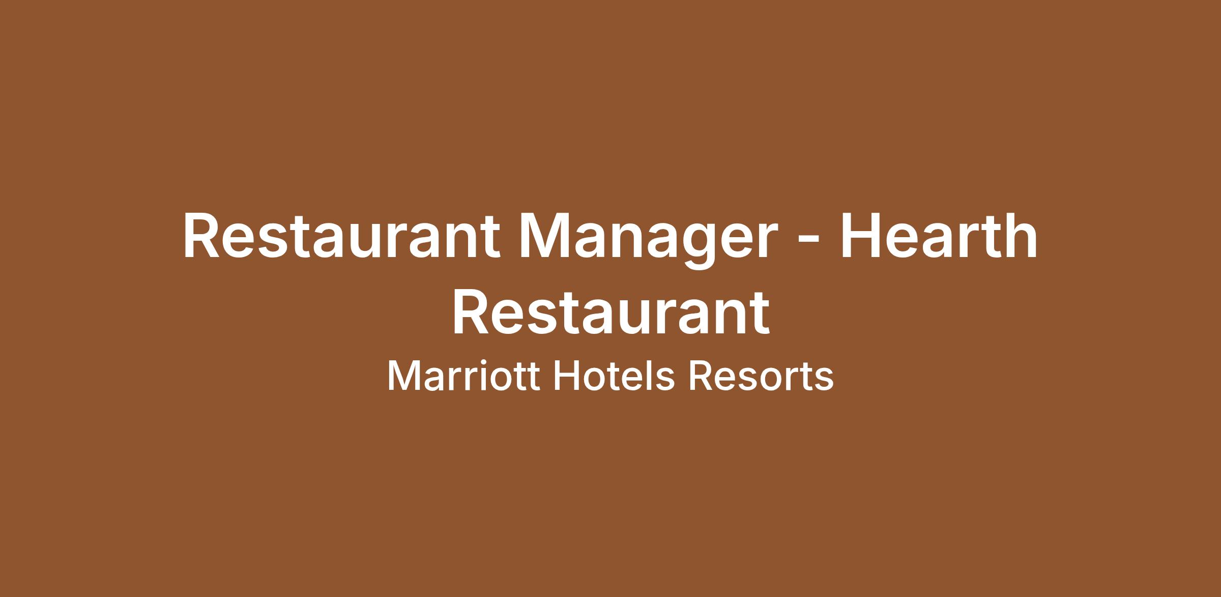 We are seeking a highly experienced, hands-on Restaurant Manager for Hearth Restaurant. This is a key leadership position responsible for driving performance, culture, and guest experience at the highest level.