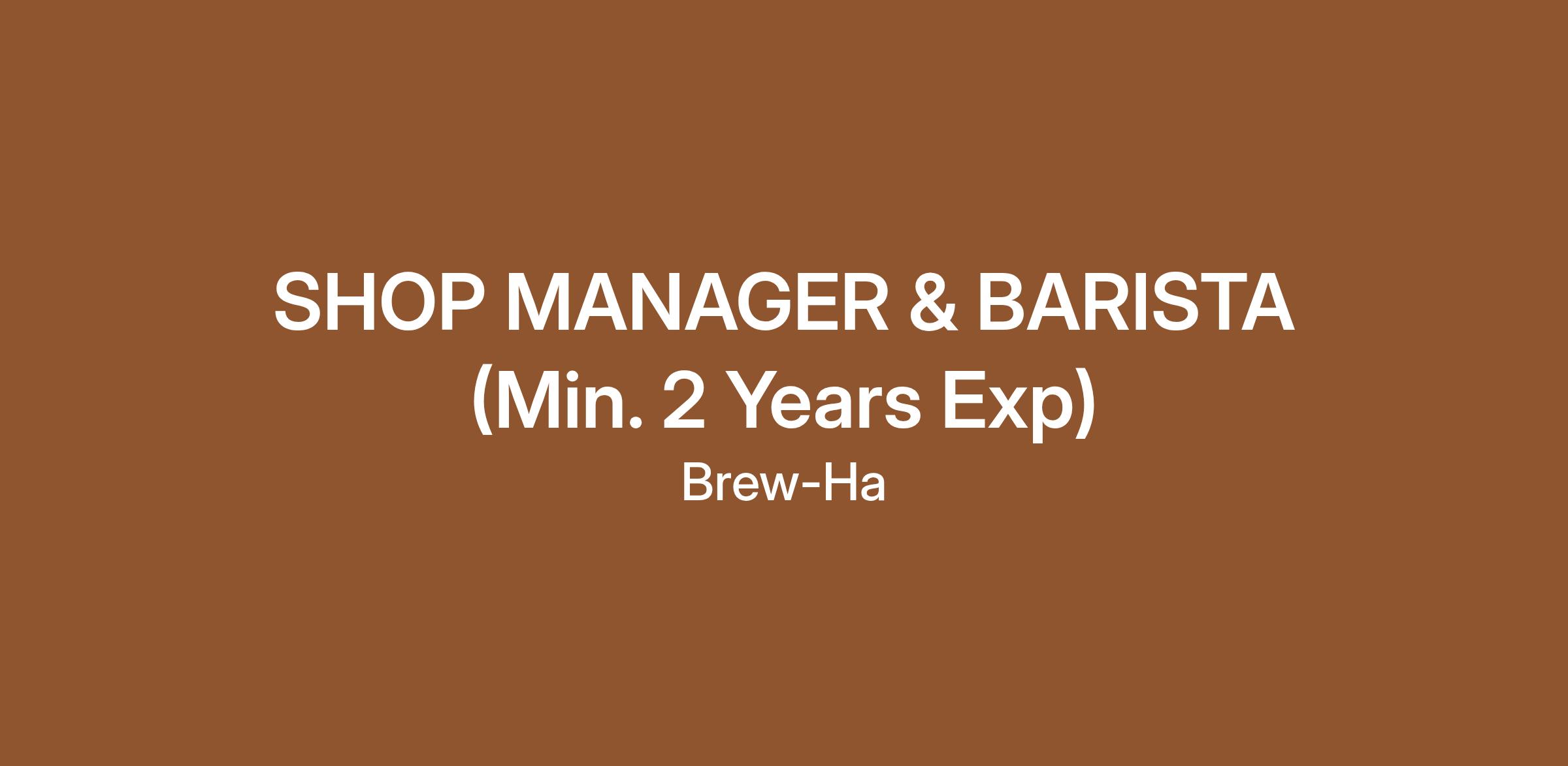 HIRING : EXPERIENCED SHOP MANAGER & BARISTA (Min. 2 Years Exp)